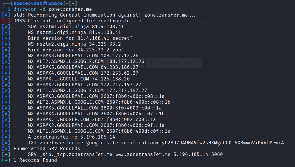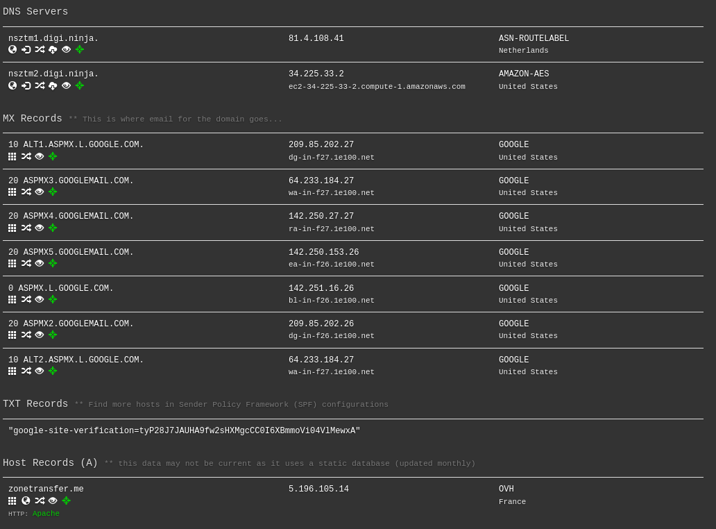 DNSDumpster Result: zonetransfer.me