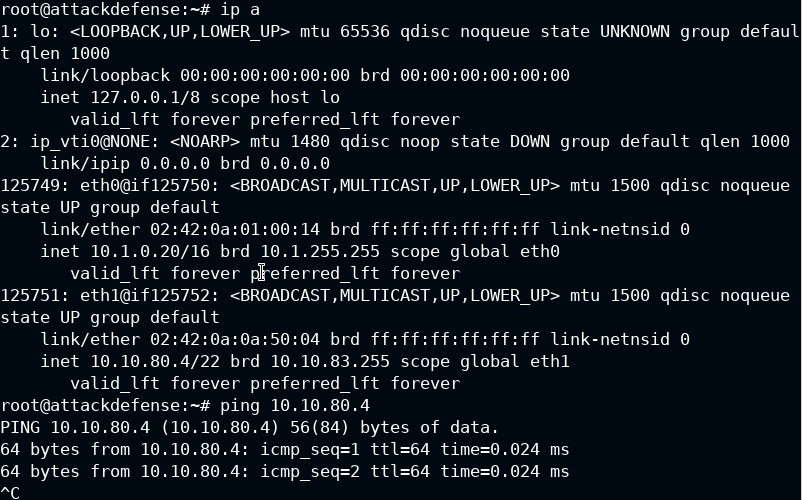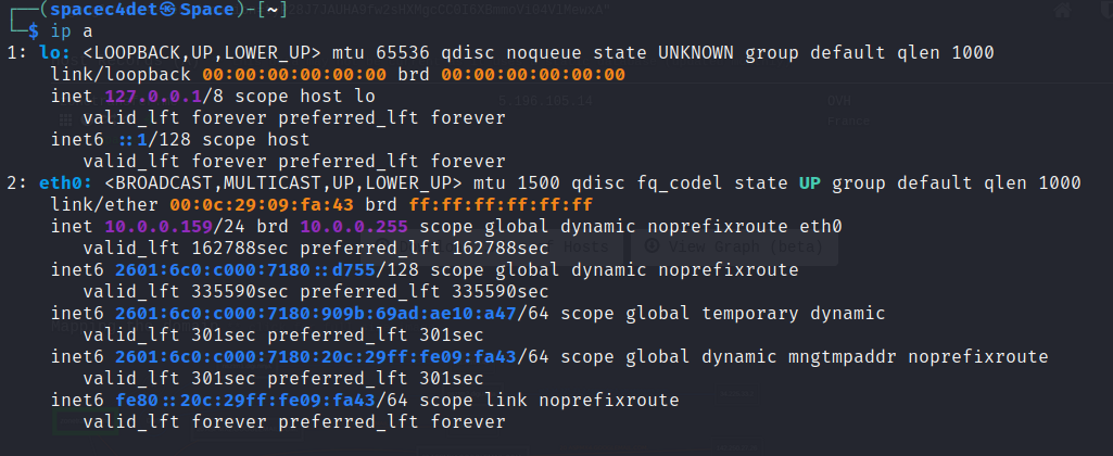 Here we ran ip a to find the IP Address of the Kali Machine we are using to perform Nmap scans.